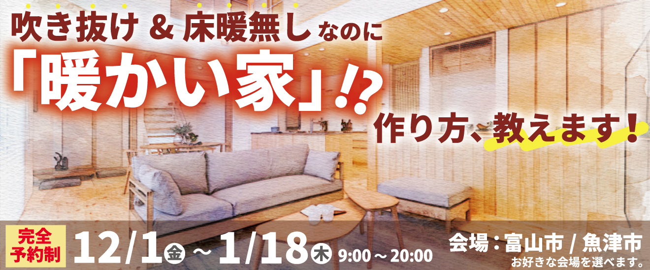 場所:西荒屋展示場(富山市西荒屋248-3)、みらーれ展示場(魚津市住吉567-1)