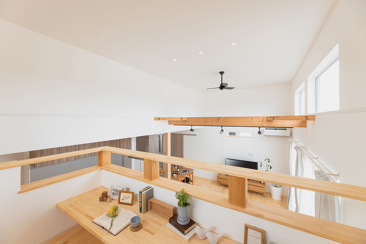 スキップフロアにはカウンターを設置し、お子様のリビング学習にぴったり!キッチンから見渡せるオープンな空間なので、お子様を見守りやすい動線です。