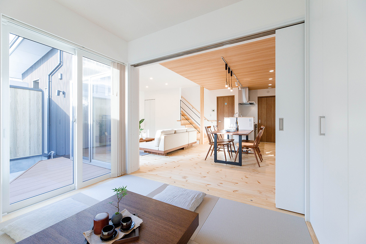 普段はオープンに使う畳コーナーですが、引き戸を設けることで和室のようなひとつの部屋になります。お子様のお昼寝スペースなどお世話をするのにちょうどいい空間です。