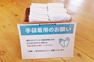・各展示場等には使い捨ての手袋をご用意しております。見学時、お打合せの際は着用をお願いいたします。