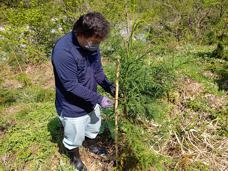 先日、雪が解けたので久しぶりに富山県魚津市の片貝川上流にて森づくり活動を行なってきました。