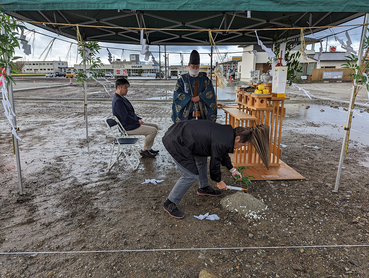 その土地を治める神様を鎮め、その土地を利用させてもらう許可を得ます。また、工事の安全を祈願する意味合いもあります。