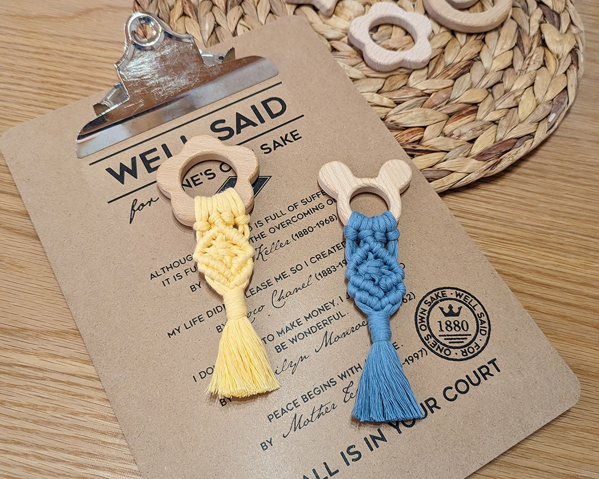 とっても可愛い世界に1つのオリジナルマクラメ歯固めが完成しました!