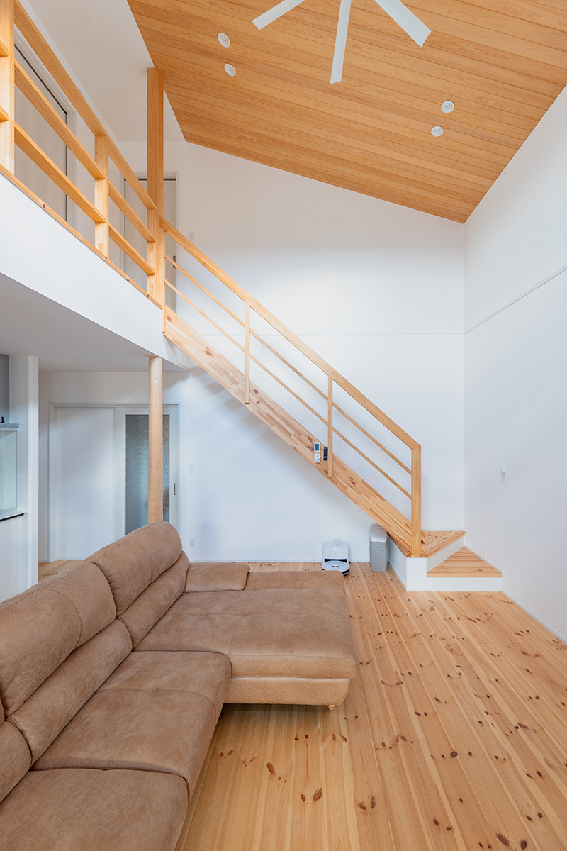「勾配天井で大空間のリビングですが、1年を通して快適です。山下ホームの担当者さんが説明してくれていた通りの高い断熱性能で、冬でもあったか。依頼先に選んでよかったと実感しています。」