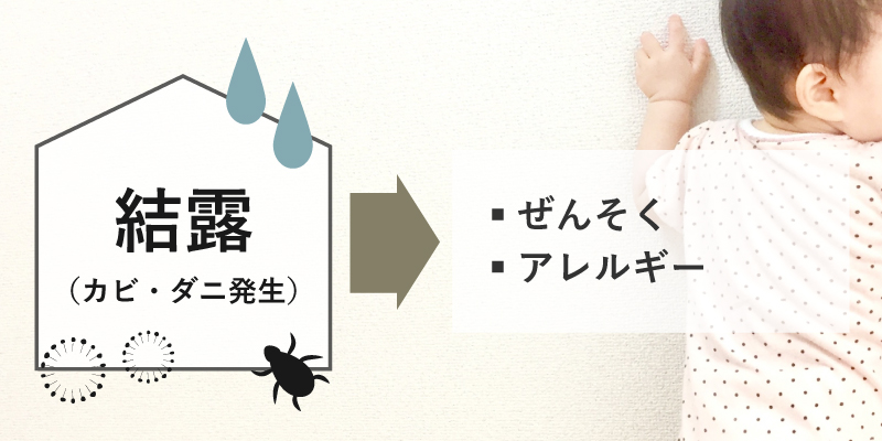 湿気対策が不十分な住宅ではダニやカビの繁殖が進みやすくなります。これらの微生物は、ぜんそくやアレルギーの原因となります。